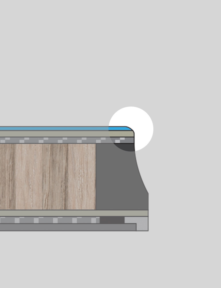 Abgeschrägtes Oberteil zur Gewährleistung einer längeren Lebensdauer. Hochleistungsfinish und Belagstruktur werden dank der Technologie unserer Montana Saphir-Maschine der neuesten Generation gewährleistet.